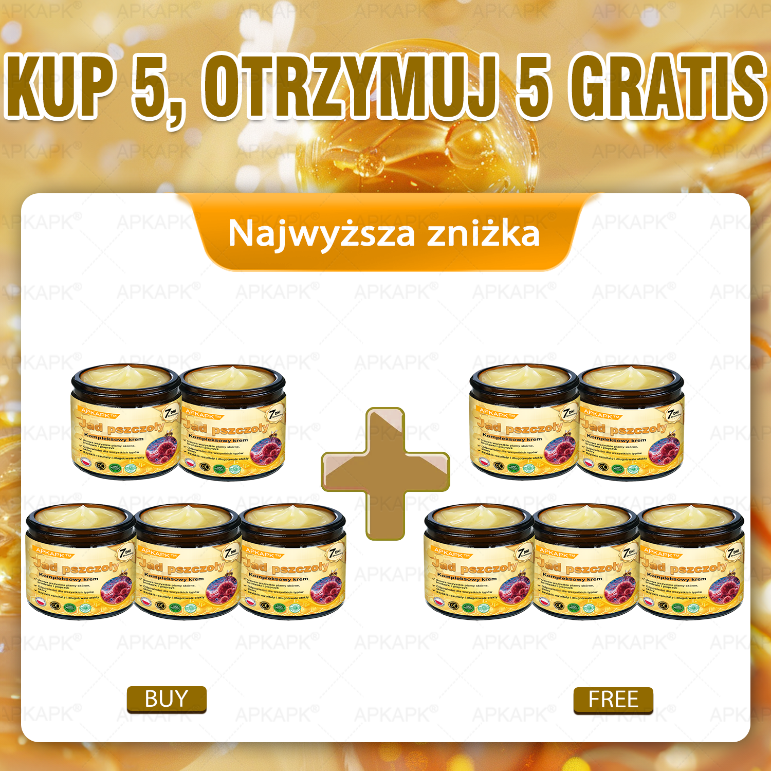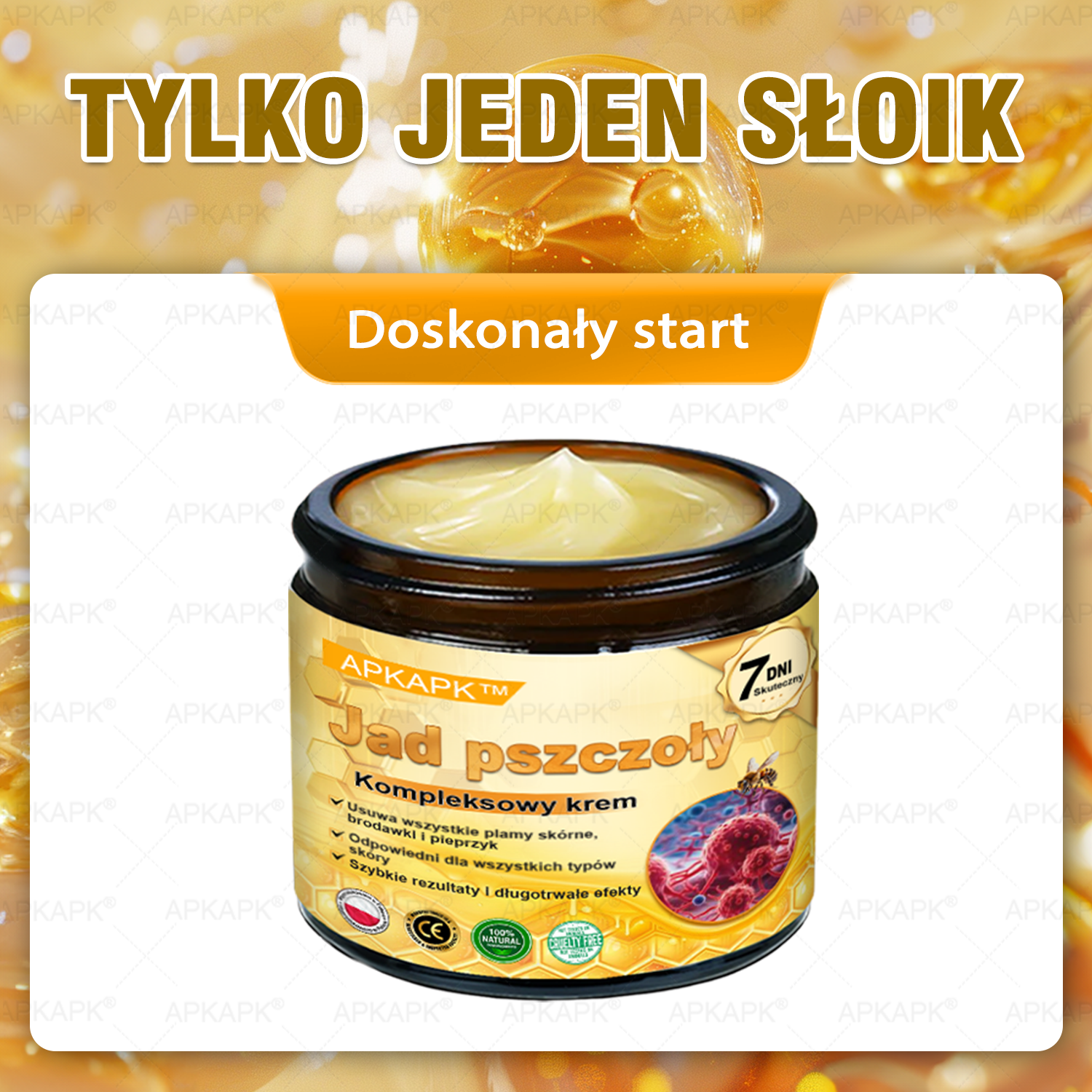 Macie dość kosztów botoksu i długotrwałych zabiegów? Poprzednie produkty do pielęgnacji skóry wprowadziły Was w zakłopotanie? Czas odzyskać pewność siebie APKAPK® Jad Pszczoły Kompleksowy Krem!